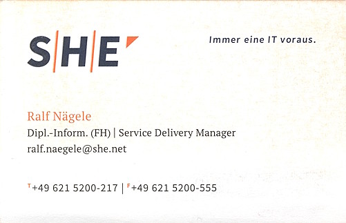 Das türkis-grün bei den alten "ShE" Visitenkarten kommt durch den Scan bedingt leider nicht so zur Geltung.